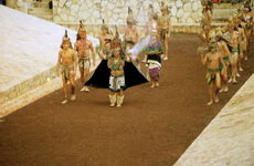 Am Abend werden wir nochdurch ein historisches Ballspiel geschleust und danach noch Theater